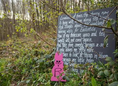 Follow Wilderness Woods' traditional bunny trail around the woods - can you solve the woodland anagram? Find spring poems, nestled amidst the trees.