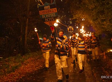 Join Chiddingly Parish Bonfire Society's fantastic annual event on the night of the 22nd November. Road closures will be in force from 6pm, then the procession starts at the Six Bells, Chiddingly around 7pm. The Grand Procession moves off from the Six Bells, through Muddles Green and along Rosemouont before arriving at Pekes Manor for the lighting of the bonfire and firework display.