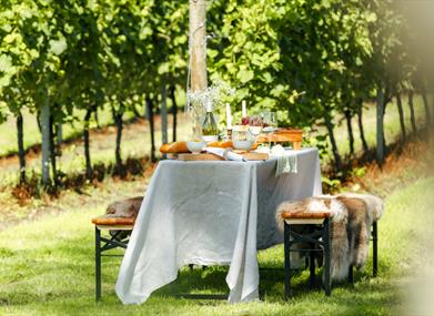 Picnics on the vineyard are available from Spring 2025, you can pre-order a picnic of your choice online and enjoy it outdoors among the vines.