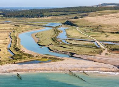 Cuckmere Haven lies on the coast at the point where the South Downs meet the sea. Its dramatic chalk landscape with a characteristic cliffy coastline is constantly changing. Cuckmere's quiet beach, is located within the Seven Sisters Country Park.