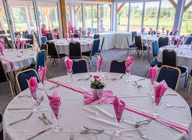 Floodlit all weather driving range. Large spacious rooms and bar, patio seating for 100. Breakfast served till 3:00pm, food served all day. All occasions catered for. Open to the public seven days a week.