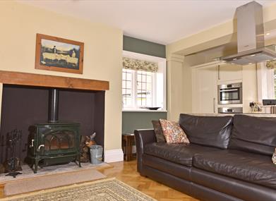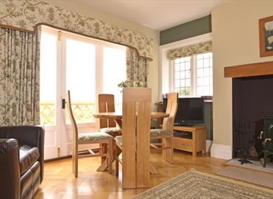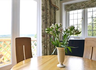 The lounge is equipped with wood-burning stove (logs provided), a TV, DVD player, iPod docking station and a Sonos WiFi speaker. The dining table is placed by the French doors, offering you the perfect opportunity to drink in the views while you eat.